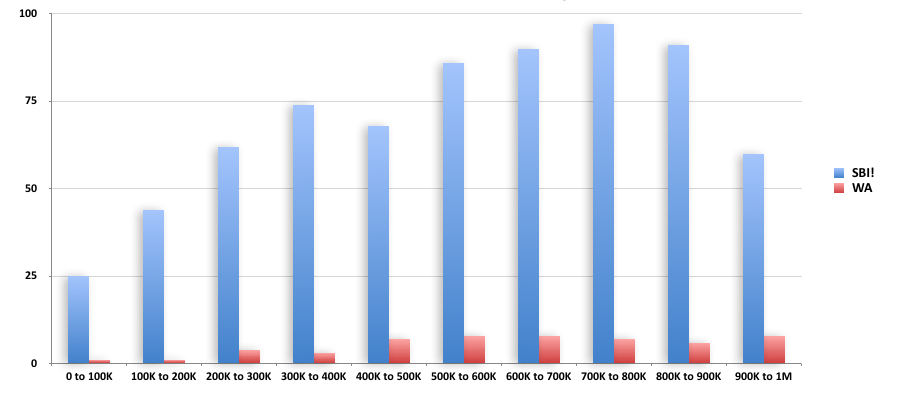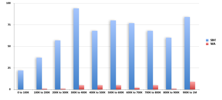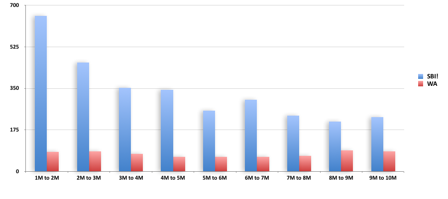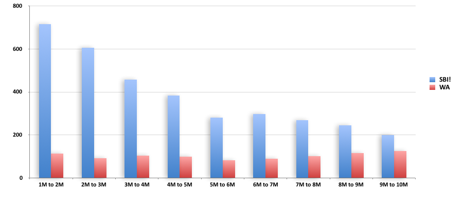 At 1-2M, SBI!'s ratio of sites in this "best of the medium range" is 7:1, decreasing to 6:1 at 2-3M until finally it's a bit less than 2:1 at 9-10M.